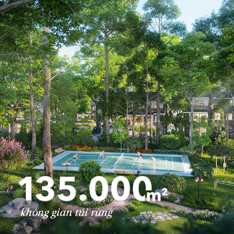135.000m² không gian “túi rừng” với những khu rừng được kiến tạo theo phương pháp Miyawaki từ Nhật Bản. Mỗi tấc đất là nơi sự sống đâm chồi, cây cối tự chữa lành và tái tạo bầu không khí.